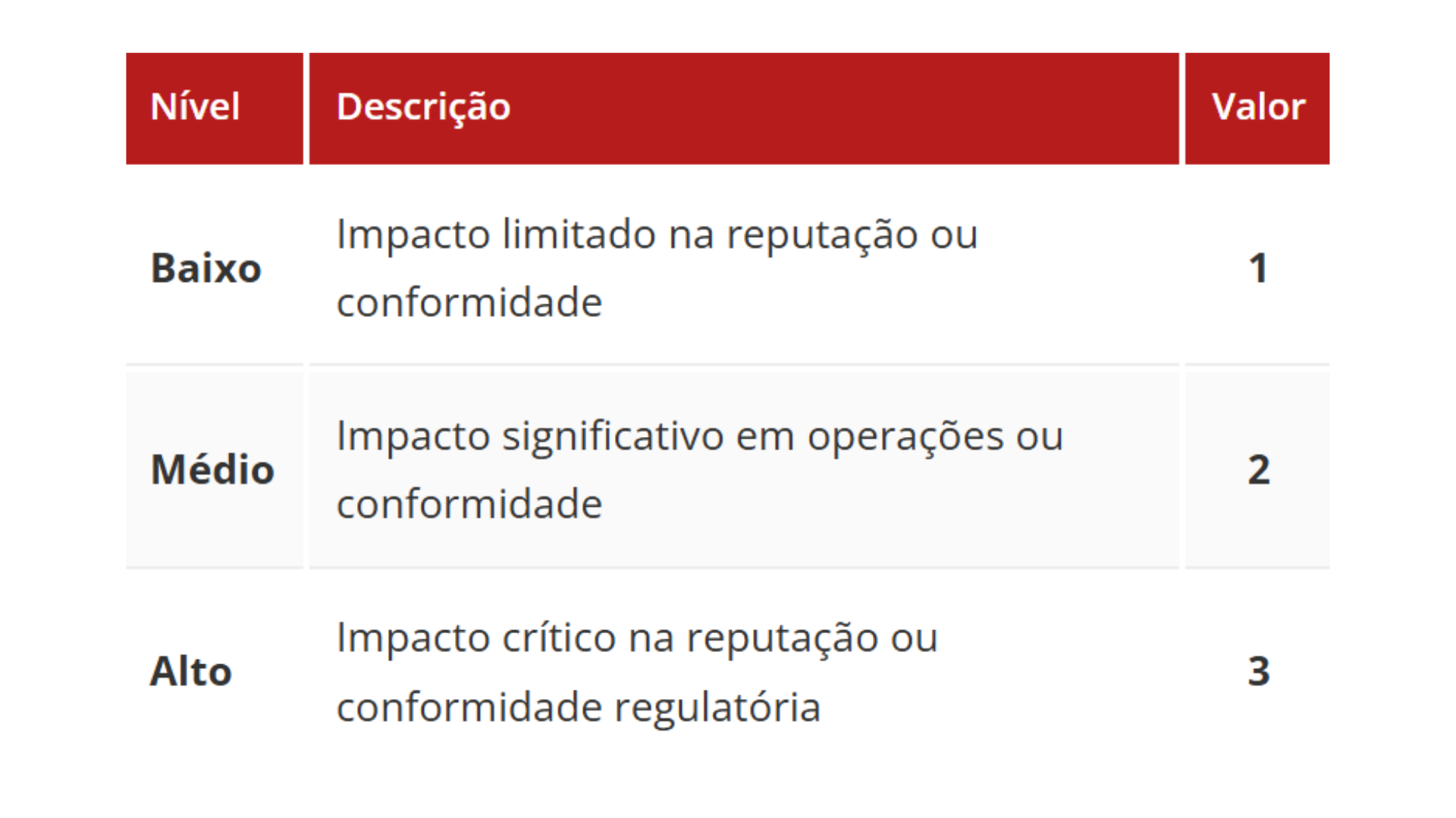 Esta abordagem permite uma avaliação objectiva e comparável de riscos em toda a organização, facilitando a priorização de recursos de conformidade e a implementação de medidas de mitigação adequadas.