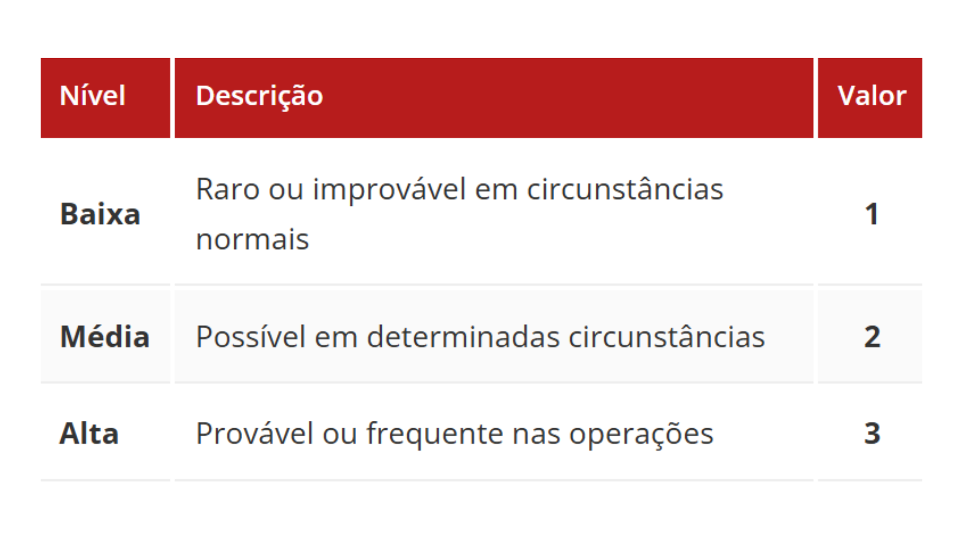 • Máximo (9): Risco inaceitável, requer ação imediata ou cessação da atividade.